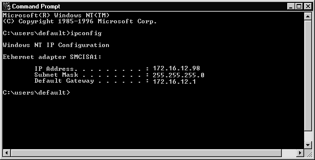 IPCONFIG is a command-line utility that displays current TCP/IP configuration information for each NIC in a Windows NT system. IPCONFIG is very useful when you need to know the IP address assigned to a Windows NT DHCP client, especially since the client could receive a different IP address every time it boots.