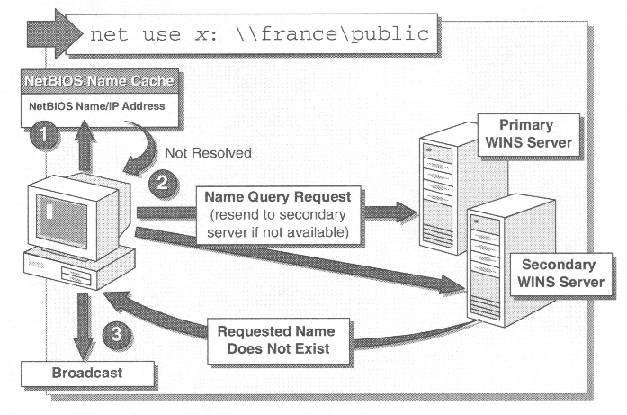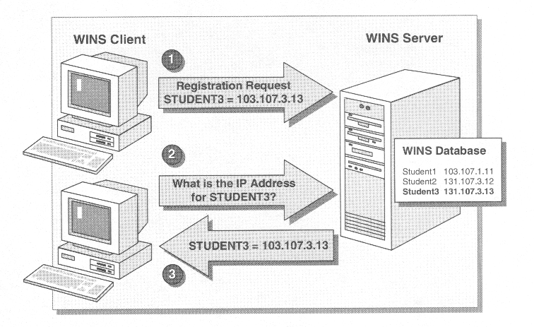 | WINS provides for Point-to-Point name resolution, in that a computer requests an IP address mapping directly from the WINS Server. | |
