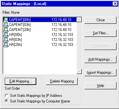 | The LMHOSTS file contains mappings of IP addresses to NetBIOS names. Its greatest limitation is that it is a static file. | |