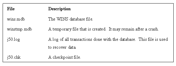 | The WINS Database is actually composed of four files all located in the \systemroot\system32\WINS directory. | |